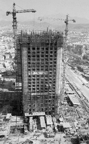 1980年8月,中國(guó)政府正式批準(zhǔn)建立深圳經(jīng)濟(jì)特區(qū),隨后又在珠海、汕頭、廈門、海南建立特區(qū)。在中國(guó)改革開(kāi)放的進(jìn)程中,深圳經(jīng)濟(jì)特區(qū)一直發(fā)揮著“試驗(yàn)田”的作用,創(chuàng)下了物價(jià)改革、企業(yè)產(chǎn)權(quán)轉(zhuǎn)讓、住房制度改革等眾多個(gè)“中國(guó)第一”。 圖為正在興建的共48層的廣東深圳國(guó)際貿(mào)易大廈(1983年3月攝)。1983年廣東省深圳經(jīng)濟(jì)特區(qū)竣工建筑面積達(dá)130萬(wàn)平方米,建成37條標(biāo)準(zhǔn)馬路,正在施工的63幢高層建筑有18幢竣工,為外商投資設(shè)廠提供了良好條件。