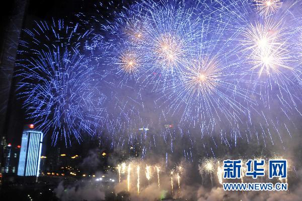 9月6日晚,絢麗的煙花在深圳上空綻放。 9月6日晚,絢爛的煙花在深圳上空綻放。 當(dāng)日,深圳深南大道水晶島南側(cè)舉行焰火晚會,慶祝深圳經(jīng)濟(jì)特區(qū)建立30周年。 新華社記者 梁志瑋攝
