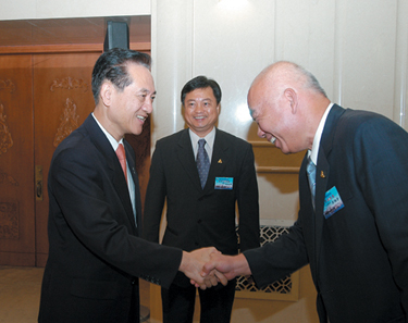 2005年7月8日,臺(tái)灣布袋港發(fā)展促進(jìn)會(huì)大陸訪問團(tuán)在北京拜會(huì)中國和平統(tǒng)一促進(jìn)會(huì),受到全國人大常委會(huì)副委員長、中國和平統(tǒng)一促進(jìn)會(huì)副會(huì)長韓啟德的親切會(huì)見。