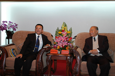 圖1:全國政協(xié)副主席、中國和平統(tǒng)一促進會副會長張克輝(右)會見訪問團成員(左為訪問團團長陳孝忠)。