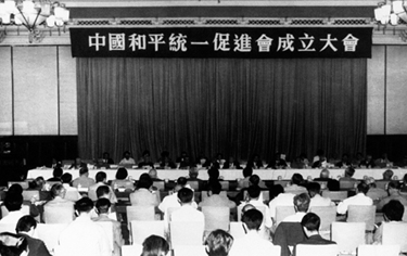 1988年9月22日,由社會各界人士組成的促進中國和平統(tǒng)一的民間團體“中國和平統(tǒng)一促進會”在北京宣告成立,參加發(fā)起的二十三家單位為個民主黨派和有關(guān)人民團體。 大會通過了《中國和平統(tǒng)一促進會章程》,選舉了領(lǐng)導(dǎo)成員,通過并發(fā)表了《中國和平統(tǒng)一促進會宣言》。 時任中共中央書記處書記、全國政協(xié)副主席、中央統(tǒng)戰(zhàn)部部長閻明復(fù)出席成立大會并講話。