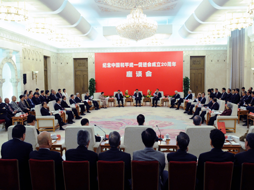 紀(jì)念中國(guó)和平統(tǒng)一促進(jìn)會(huì)成立20周年座談會(huì)27日在人民大會(huì)堂舉行。