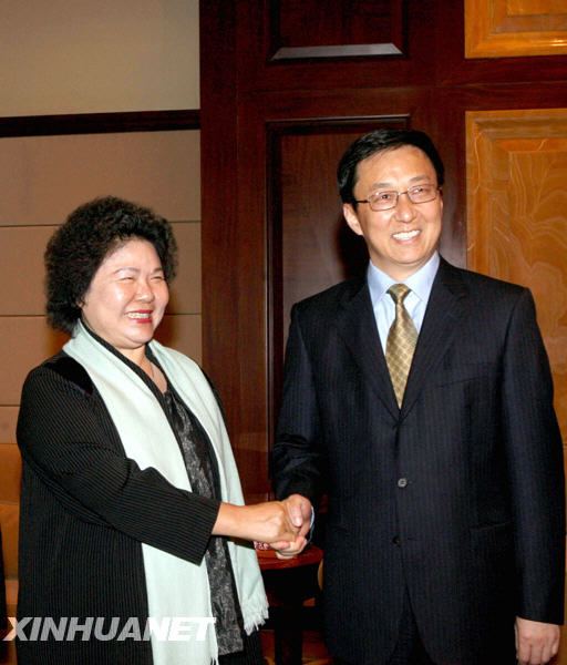 5月22日,中國(guó)奧委會(huì)主席劉鵬在北京會(huì)見高雄市長(zhǎng)陳菊。新華社記者 邢廣利 攝