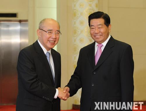 5月25日,中共中央政治局常委、全國政協(xié)主席賈慶林在北京人民大會(huì)堂會(huì)見中國國民黨主席吳伯雄。新華社記者 李學(xué)仁 攝