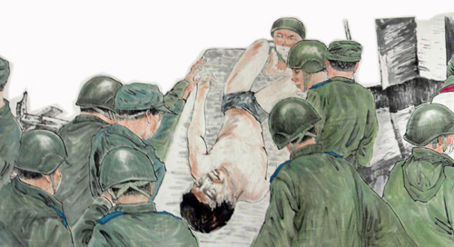 這幅被命名為《振起豐碑》的國畫人物長卷,高1米多,長100多米,裱好后的重量達(dá)30多公斤,畫卷中的人物多達(dá)600多名,有領(lǐng)導(dǎo)人親臨一線指揮救災(zāi)的情景,有解放軍官兵奮力救災(zāi)的情景,有醫(yī)務(wù)人員冒險救死扶傷的場面,還有從廢墟中被救出的人們,感嘆劫后余生的場景。