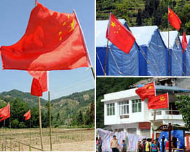 五星紅旗青川飄揚(yáng) 賑災(zāi)士氣備受鼓舞