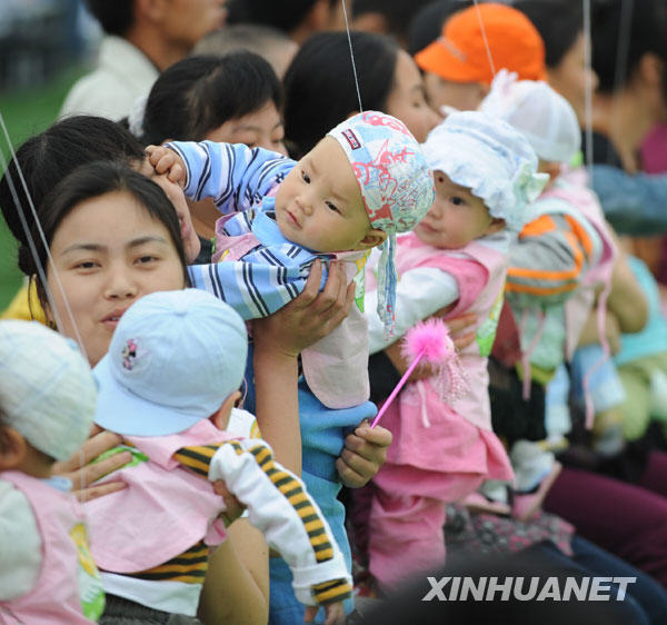 2009年5月13日,在什邡市剛剛落成的由北京援建的北京小學操場上,108個“羅漢娃”舉行了集體生日抓周活動。許多愛心人士不遠千里來到現(xiàn)場,與寶寶們結對,拜認干爹干媽。