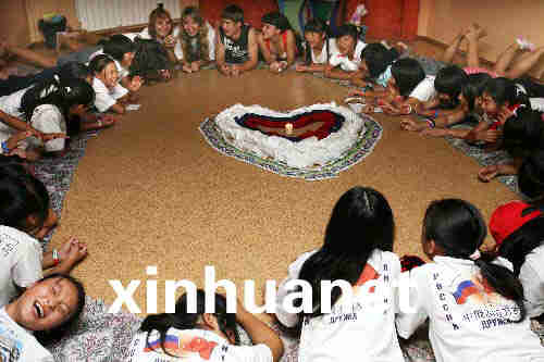 8月4日,在俄羅斯“海洋”全俄兒童中心,來自中國四川地震災區(qū)的孩子們和俄羅斯輔導員共同參加燭光晚會。新華社記者鄭悅攝