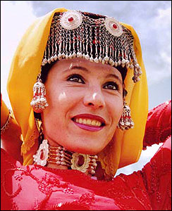 婚俗:塔吉克人實(shí)行一夫一妻制,婚禮舉行三天,吹鷹笛、打手鼓、跳鷹舞,極為熱烈。第三天,“拜德爾汗”(主持婚姻的老人)揭開新娘面紗后,開始新生活。