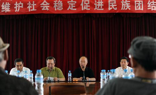 7月16日,新疆文聯(lián)黨組書記劉賓(后右二)在座談會(huì)上發(fā)言。 新華社記者 金良快 攝