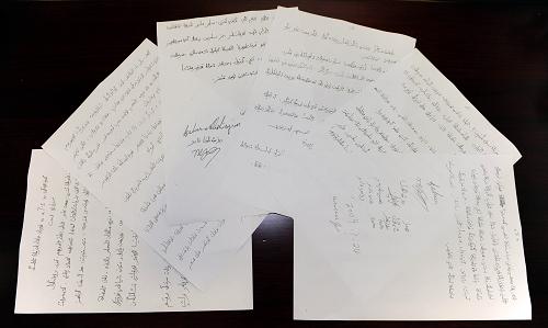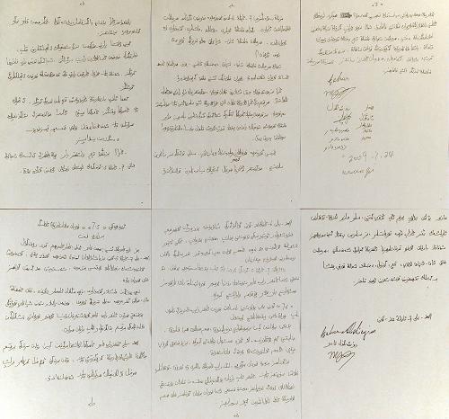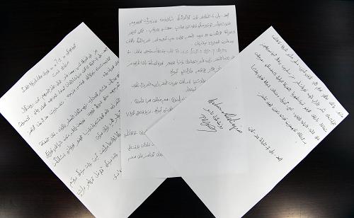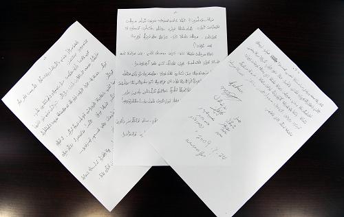 這是熱比婭境內(nèi)親屬分別致熱比婭和烏魯木齊“7·5”事件遇難者家屬的信件(8月2日攝)。熱比婭在境內(nèi)的親屬--兒子卡哈爾、女兒茹仙古麗和弟弟買(mǎi)買(mǎi)提等,近日分別致信熱比婭和烏魯木齊“7·5”事件遇害者家屬,對(duì)熱比婭違背了自己的誓言參與分裂活動(dòng)表示不滿(mǎn),對(duì)暴力事件表示氣憤,對(duì)無(wú)辜死亡的群眾和他們的家屬表示歉意。新華社記者 丁林 攝