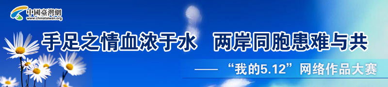 | 地震無(wú)情,同胞有愛(ài)。5.12汶川特大地震發(fā)生后,臺(tái)灣同胞或親赴災(zāi)區(qū)提供搜救、醫(yī)療服務(wù),或踴躍捐款捐物、援建校舍。大陸有關(guān)部門(mén)也緊急采取措施,及時(shí)救助身陷災(zāi)區(qū)的臺(tái)灣同胞,并讓他們能能夠脫離險(xiǎn)境,安全返鄉(xiāng)。地震引發(fā)了兩岸同胞親情的大交匯,讓我們見(jiàn)證了患難與共的同胞親情。時(shí)隔一年,災(zāi)區(qū)正在加緊重建,災(zāi)區(qū)同胞正在重拾信心和希望。同時(shí),臺(tái)灣同胞也在關(guān)注著災(zāi)區(qū)。這一年中,如果你親歷過(guò)或見(jiàn)證過(guò)身邊出現(xiàn)的同胞相互救助的感人事跡,如果你想抒發(fā)情懷,如果你想與同胞分享這份經(jīng)歷,請(qǐng)向我們發(fā)來(lái)您的作品,讓她成為我們共同的感動(dòng)和永久的記憶,并藉此紀(jì)念“5.12”汶川地震一周年。 |