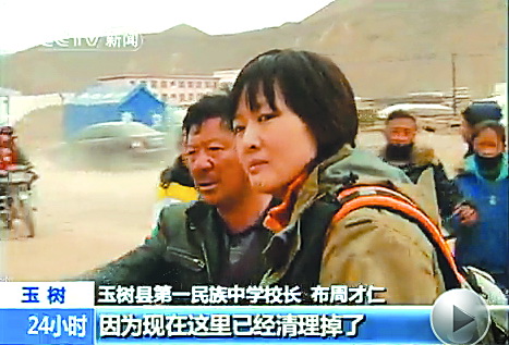 中央電視臺等媒體記者在玉樹地震災區(qū)采訪報道。