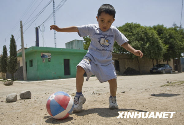 5月8日,在墨西哥韋拉克魯斯州拉格洛利亞村,墨西哥首位人感染甲型H1N1流感患者埃德加·恩里克·埃爾南德斯在家門(mén)口玩耍。新華社發(fā)(戴維攝)