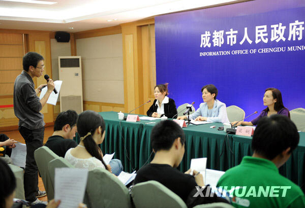 5月14日,一名記者在成都市人民政府新聞發(fā)布會上提問。新華社記者陳燮攝