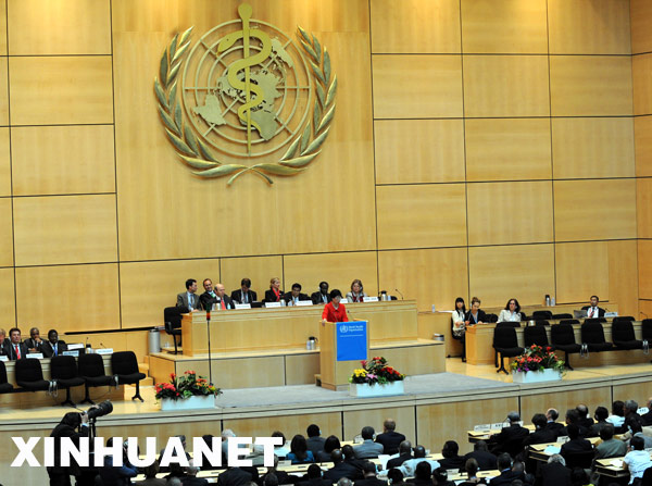 當(dāng)天,第62屆世界衛(wèi)生大會(huì)開(kāi)幕,陳馮富珍在會(huì)議上呼吁全球加強(qiáng)協(xié)作,應(yīng)對(duì)甲型H1N1流感。新華社記者曾毅攝