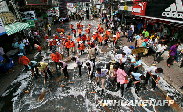 6月15日,工作人員在泰國帕塔亞清潔一條街道,以防范甲型H1N1流感疫情。截至北京時間6月15日14時,世界衛(wèi)生組織共確認(rèn)泰國甲型H1N1流感確診病例8例。新華社/法新
