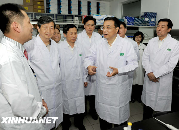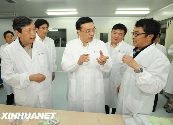 5月29日,中共中央政治局常委、國務(wù)院副總理李克強到中國醫(yī)學(xué)科學(xué)院和北京科興生物制品有限公司考察甲型H1N1流感防控工作,對聯(lián)防聯(lián)控工作作進(jìn)一步部署。這是李克強考察北京科興生物制品有限公司,了解疫苗和藥品研制生產(chǎn)情況。新華社記者 馬占成 攝