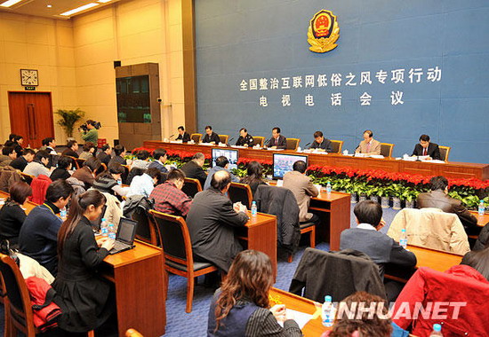 國務(wù)院新聞辦、工業(yè)和信息化部、公安部、文化部、工商總局、廣電總局、新聞出版總署等七部門1月5日上午召開電視電話會(huì)議,部署在全國開展整治互聯(lián)網(wǎng)低俗之風(fēng)專項(xiàng)行動(dòng)。國務(wù)院新聞辦副主任蔡名照主持會(huì)議并講話,強(qiáng)調(diào)要采取有力措施堅(jiān)決遏制網(wǎng)上低俗之風(fēng)蔓延,進(jìn)一步凈化網(wǎng)絡(luò)文化環(huán)境,保護(hù)未成年人健康成長,推動(dòng)互聯(lián)網(wǎng)健康有序發(fā)展。