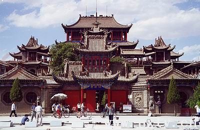 位于中衛(wèi)縣城北,始建于明永樂(lè)年間(1403-1424年),經(jīng)歷代增建重修,至清代時(shí)已成為一處規(guī)模較大的古建筑群!「邚R是一座三教合一的寺廟。供奉的不僅有佛、菩薩,還有玉皇、圣母、文昌、關(guān)公等塑像,廟內(nèi)佛、道、儒三教濟(jì)濟(jì)一堂。廟前有保安寺,山門(mén)朝南,兩側(cè)建有廂房,正面為單檐歇山頂?shù)拇笮蹖毜。殿后為高廟,有24級(jí)臺(tái)階,拾級(jí)而上,經(jīng)牌坊、南天門(mén)、中樓,最后是高達(dá)三層的五岳、玉皇、圣母殿。這些主要建筑,都在同一條中軸線(xiàn)上,它們層層相連,呈逐步增高之勢(shì)。在高廟主體建筑的兩側(cè),還有鐘樓、鼓樓、文樓、武樓、靈官殿,地藏殿等配殿,結(jié)構(gòu)緊密,氣勢(shì)雄偉。
