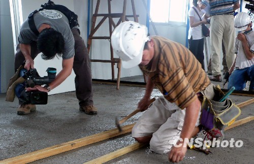 8月23日,大陸3名技術人員現(xiàn)身臺灣高雄縣災民安置活動板房建設工地。深圳雅致集成房屋公司工程部經(jīng)理楊云接受訪問時表示,他們一行將為活動板房搭建工作提供技術支持,并對現(xiàn)場施工人員進行培訓;另外,公司有7個技術人員待命、可隨時前來協(xié)助。中新社發(fā) 劉舒凌 攝