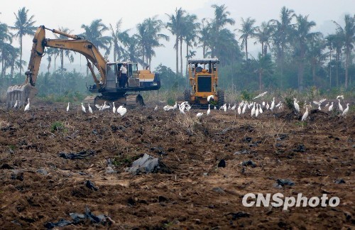 8月23日,大陸3名技術人員抵達臺灣高雄縣災民安置活動板房建設工地,將為活動板房搭建工作提供技術支持,并對現(xiàn)場施工人員進行培訓,首批100戶活動板房的興建工作相信能夠在今后3周內完成。圖為工程車加緊進行整地工作。中新社發(fā) 劉舒凌 攝 |