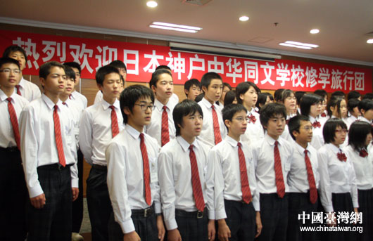 8月25日晚,日本神戶中華同文學(xué)校修學(xué)旅行團通過全國臺聯(lián)向臺灣南部災(zāi)區(qū)捐款約5萬元人民幣。捐款結(jié)束后,同學(xué)們合唱《我和你》與《朋友》兩首歌曲,表達對臺灣災(zāi)區(qū)受災(zāi)同胞的祝福。(中國臺灣網(wǎng) 鐘寶華 攝) |