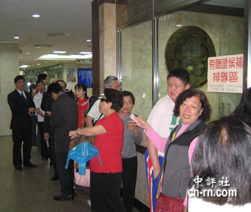 法院內(nèi)依舊有民眾排隊(duì)領(lǐng)旁聽證。