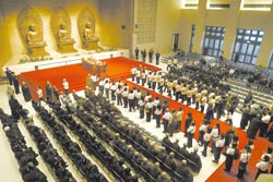 臺灣法鼓山創(chuàng)辦人圣嚴法師3日圓寂,4日移靈金山法鼓山世界佛教教育園區(qū)大殿供信眾瞻仰,一早信眾陸續(xù)前往瞻仰圓寂的圣嚴法師法相。(臺灣《中國時報》圖片)