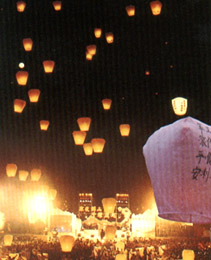 <%beginrecord%><%endrecord%> “南蜂炮,北天燈”,元宵節(jié)對平溪而言是個大日子,這一天,平溪人不僅猜燈謎、提花燈,更重要的是,當(dāng)?shù)鼐用駥⒃谶@一天燃放天燈祈福,為北臺灣元宵時節(jié)最具民俗色彩的活動,近來年已與臺南鹽水蜂炮齊名。 天燈為孔明燈之俗稱,一說是三國時孔明為通軍情所發(fā)明,一說是因燈型與孔明的帽型相似而得名。平溪放天燈風(fēng)俗由來已久,這項傳統(tǒng)為保身家性命的舉措,至今已演化為延續(xù)傳統(tǒng)的單純民俗活動,人們藉此向天祈福、許愿、求平安。 天燈以棉紙糊罩、竹簽作箍,整個形狀就如一只四角的紙袋,燈罩上寫著人們的祈愿。施放時將燈腳下已沾染油料的金紙點燃后,按在地面上,街熱氣充滿即可放手;只見一只只燃著火苗的紙燈冉冉飛升、送入夜幕,彷如點點鬼火,加上地面震天價響的鞭炮助陣及群眾呼嘯吶喊聲,幽冥的虛渺與人間的擾攘,交揉成一片奇異的盛況。 天燈一般為120公分高,不過活動中也會施放一些3公尺以上的大型天燈,并銜接著鞭炮以壯聲勢;天燈活動最后施放的“天燈王”甚至可達三層樓高,巨大的熒火在點點小天燈簇擁下飛進黑魅蒼穹,愈升愈高,乃至隱于天際,一場奇魅的夜戲于此消失落幕,人們的祝禱也通達天聽了。 平溪天燈會系由平溪天燈協(xié)會主辦,現(xiàn)場開放民眾認購施放,每年都吸引數(shù)萬觀光人潮蜂擁而至,蔚為盛事。 乘車風(fēng)向標(biāo):