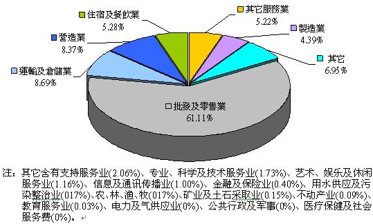 圖一 臺北縣商業(yè)登記各行業(yè)分占比例圖