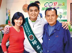 邱名璋(中)力拼連任屏東縣議員,父親邱茂男(右)、姐姐邱議瑩(左)是最大靠山。 圖片來源:臺灣《中國時報》