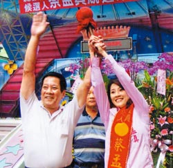 口湖鄉(xiāng)長(zhǎng)候選人蔡永常(左)與縣議員候選人蔡孟真(右),父女期許一起當(dāng)選服務(wù)民眾。 圖片來(lái)源:臺(tái)灣《中國(guó)時(shí)報(bào)》