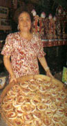 豆干是眾所周知的大溪特產(chǎn),黑豆干尤具代表,其源于四代相傳、迄今已逾70年的黃日香,其開業(yè)始祖黃屋監(jiān)于豆干易餿壞,遂發(fā)明以焦糖染色的黑豆干,延長(zhǎng)其保存期限。黑豆干好吃的秘訣,在于研磨豆?jié){時(shí)即混入香料,使豆干內(nèi)外皆香氣十足,尤其滷后放涼再食用,滋味更佳。 除歷史悠久的黃日香外,制作豆干的老店尚有系出同門的黃大目,與具有60余年歷史的萬(wàn)里香等;而林立的豆干店已成為大溪鎮(zhèn)上主要的街景。除了黑豆干,蒜蓉、沙茶、滷汁等各種口味的包裝豆干外,現(xiàn)滷的黑豆干、素雞、素肚,香噴噴、熱騰騰,加一點(diǎn)蒜汁、辣椒,灑上一把香菜,滋味令人久久不忘。 地瓜餅為大溪的另一項(xiàng)土產(chǎn),昔日大溪人以地瓜蒸熟后搗成泥狀,與紅糖、糯米粉拌勻,裹上薄薄的面皮,烘焙成顏色與形狀都像滿月的地瓜餅,既是大溪人中秋節(jié)少不了的應(yīng)景食品,亦是平日生活的可口小點(diǎn)。好吃的地瓜餅內(nèi)餡Q軟、甜而不膩、皮薄而不硬,但因地瓜餡不耐久放,得每日現(xiàn)做,故新鮮是品賞地瓜餅的第一要素。大溪鎮(zhèn)上的大小糕餅鋪幾乎都有販?zhǔn)鄣毓巷灒┮园倌昀系甑暮险湎慵坝勒湎、振馨軒較知名;此外,以檳榔心芋頭所做的芋頭餅、白豆沙餅、咖哩餅也值得一試。 除了豆干與地瓜餅,傳承四代的百年油飯、人情味十足的里長(zhǎng)嬤碗粿、野味大全的腹中補(bǔ)食班,和喚起童年美味的正豐米麩、賴媽媽豆花等,都是兜游大溪時(shí),令人難忘的好滋味。 里長(zhǎng)嬤碗粿 地址 和平路79號(hào) 營(yíng)業(yè)時(shí)間 周日0800~1200 店內(nèi)特色 咸碗粿、黑糖碗粿 里長(zhǎng)嬤邱李寶秀在大溪賣碗粿已經(jīng)數(shù)十年了,碗粿純以在來(lái)米蒸飲,加上脆爽的蘿卜干和爆炒過的香菇、蝦米,淋上也是大溪特產(chǎn)的蒜汁金蘭醬油,捧著30年左右的古董碗,與阿嬤閑話家常,感受備覺溫馨;此外,黑糖及綠茶口味的碗粿也十分可口。由于里長(zhǎng)嬤年事已高,因此只有周日上午才“偶爾”開門擺攤,想吃的人可得碰運(yùn)氣。 腹中補(bǔ)食班 地址 中正路37號(hào) 電話 (03)388-6001,388-2926 營(yíng)業(yè)時(shí)間 1100~2000 店內(nèi)特色 鯰魚料理、土雞、炒野菜 大溪附近深闊的水庫(kù)、潔凈的溪流,提供了肥美的鰱魚、鯰魚、溪蝦、溪哥等,中正路上的腹中補(bǔ)食班即善用天然食材,做出極富野味的美食,尤其是鯰魚料理更是拿手絕活,藥墩、三杯、紅燒、清蒸等作法都不錯(cuò),其他如甲魚、毛蟹的料理也很在行,而土雞、炒桂竹筍、炒野菜等亦為招牌。 黃日香豆干本鋪 地址 和平路56號(hào) 電話 (03)388-2546,388-2055 營(yíng)業(yè)時(shí)間 0700~2100 店內(nèi)特色 黑豆干、姜絲豆干 為求新鮮與原味,店家仍保留焦糖染色的過程,游客可藉此了解黑豆干“黑”的緣由,店內(nèi)特別制作滷過后再放涼的黑豆干,細(xì)細(xì)咀嚼最能吃出原味。除了黑豆干,袋裝的各種口味豆干也很受歡迎,其中姜絲豆干在油豆腐內(nèi)包著甜腌姜,口味獨(dú)特。店內(nèi)也販賣熱騰騰的現(xiàn)滷豆干、素雞、素肚等。 賴媽媽傳統(tǒng)豆花 地址 多目標(biāo)體育館1號(hào) 電話 (03)388-9646 營(yíng)業(yè)時(shí)間 0700~1800 店內(nèi)特色 原味豆花 賴媽媽豆花位于體育館一樓入口處,在大溪已有20多年歷史了。店內(nèi)唯一的產(chǎn)品即為自制的傳統(tǒng)豆花,質(zhì)地綿密,口感滑潤(rùn),宛如細(xì)致怡人的布丁,搭配花生、紅豆、大紅豆、綠豆等,冷熱皆宜;然而熟客多偏愛原味,簡(jiǎn)單地淋上姜汁、糖水, 加上燉得入口即化的花生,最能感受豆花清甜的原味。 合珍香餅行 地址 中央路161號(hào) 電話 (03)388-2950 營(yíng)業(yè)時(shí)間 0700~2100 店內(nèi)特色 地瓜餅、芋頭餅、平沙餅、咖哩餅 位于三角公園旁,為制作壽桃、面龜、喜餅的百年老字號(hào),其地瓜餅亦為店內(nèi)聞名的糕餅,所做的餅因地瓜泥與糯米粉的比例恰到好處,因此口感十分Q軟且不粘牙,內(nèi)餡質(zhì)地細(xì)致,外皮薄而香酥;而以檳榔心芋頭做的芋頭餅、入口即化的白豆沙餅、香氣濃重的咖哩餅,也很受歡迎。 正豐食品行 地址 中正路30號(hào) 電話 (03)388-0942 營(yíng)業(yè)時(shí)間 0900~1900 休息時(shí)間 周一、三1400~1600 店內(nèi)特色 糙米米麩、四神米麩、原味米香 制作米麩及米香已經(jīng)超過20年頭,是大溪碩果僅存的“專業(yè)”店家,其中糙米米麩以純糙米研制,含有豐富的纖維素,具有健胃腸、治下痢的功效,而四神米麩則是加入四神一同研制,可以養(yǎng)氣補(bǔ)身。爆米香為制作米麩前的重要過程,加入花生、海苔、香菜等口味,便成了令人懷念的零嘴。 百年油飯 地址 民權(quán)路17號(hào) 電話 (03)388-1681 營(yíng)業(yè)時(shí)間 平日1630~2300,假日1100~2300 休息時(shí)間 周三 店內(nèi)特色 滿月油飯、筒仔米糕、赤肉羹、木瓜排骨湯、龍骨髓湯 百年油飯?jiān)灾谱飨矐c祭祀的油飯為主,一個(gè)世紀(jì)以來(lái)極受好評(píng),而年節(jié)之外,店里長(zhǎng)年供應(yīng)的筒仔米糕,亦提供絕佳的米香。制作油飯的糯米事前須經(jīng)長(zhǎng)時(shí)間的浸泡,炊煮出來(lái)的米飯才會(huì)香甜Q軟,再搭配經(jīng)過麻油爆香的紅蔥頭、精肉、香菇、蝦仁等,讓人食指大動(dòng);此外還精燉多種鮮美湯料,是最佳搭配。