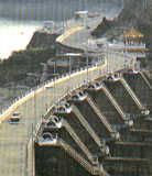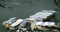 石門水庫位于桃園縣東南,攔截大漢溪中游溪水,在群山環(huán)抱間形成廣闊的深潭,水庫最為人津津樂道的莫過于優(yōu)美的湖光山色,兼有壯闊的水利工程,亦有清新可人的小品風(fēng)光,無論是游湖、賞楓、賞鳥、登山健行、漫步小憩,都可暢懷盡興,早已成為都市人逃離塵囂最佳去處。 水庫因溪水出口處有石門山、溪洲山雙峰對峙,狀如石門而得名。灌溉區(qū)域涵蓋臺(tái)北縣新莊以南至新竹以北的廣大地區(qū),并提供防洪、飲水、發(fā)電等功能。 水庫四周湖光山色、風(fēng)景秀麗,為一處湖泊游憩勝景。壩頂區(qū)為水庫觀光的中心,立于其上,水庫寬廣的湖面、大漢溪河階景觀及迤邐的桃園臺(tái)地,盡收眼底;游客亦可自停車場下方碼頭乘船游湖,由湖心欣賞山水風(fēng)光,或搭船至對岸的童話世界、上游的龍珠灣、阿姆坪游玩,水量豐沛時(shí)還可達(dá)復(fù)興鄉(xiāng)的溪口臺(tái)地。 大壩為水庫最雄偉的景觀,壩高133公尺,為島內(nèi)最大的土石壩,溢洪道為鞍部瀉槽式,有弧形閘門6座,最大溢洪量每秒11400立方公尺,每逢大雨,總吸引游人至此欣賞泄洪的壯麗景觀;溢洪道下方還設(shè)有發(fā)電廠、石門大圳等。大壩四周遍植楓、槭、梅、櫻、樟樹等林木,一片綠意,為石門水庫妝點(diǎn)出多采多姿的四季風(fēng)情。 自大壩沿著環(huán)湖公路往上游而行,一路上綠蔭籠罩,山青水綠的景致總令人流連忘返;所經(jīng)之處皆為林相完整的水土保安林。濃密的樹木為鳥兒提供了絕佳的庇護(hù)及豐盛的食物,不啻為欣賞低海拔山鳥的寶庫。穿越大壩,對岸則有石門勝景碑、依山閣、梅園、楓林步道等景點(diǎn),其中楓林步道兩旁栽植多達(dá)3000余棵樹齡超過30年的青楓純林,步道下方另有槭林公園,冬季時(shí)青楓的火紅與楓香的金黃相映成趣,為北臺(tái)灣低海拔賞楓勝地。 楓林步道 大壩與高線收費(fèi)站間的山坡,為高大整齊的青楓純林,每年冬季時(shí)楓紅片片惹火,是北部最佳的低海拔賞楓勝地。楓林里,步道縱橫,漫步其間享受新鮮的空氣,深受健行者喜愛。 童話世界 童話世界位于大壩對岸,須搭乘環(huán)湖游艇方可抵達(dá);園區(qū)以童年夢幻世界為設(shè)計(jì)主軸,其中橫跨湖面的鵲橋吊橋,及散布園區(qū)各處的景觀臺(tái),為盡攬水庫風(fēng)光的最佳據(jù)點(diǎn)。 大壩·八角亭 站在大壩上方,只見兩側(cè)山壁夾峙,遼闊的桃園臺(tái)地與青綠的水庫風(fēng)光,各具風(fēng)情;大壩旁設(shè)有觀景臺(tái),為俯瞰溢洪道和大壩主體的最佳角度。八角亭立于大壩旁的小丘上,海拔270公尺,視野極佳,可居高臨下俯瞰大漢溪谷、桃園臺(tái)地及石門水庫大半風(fēng)光。 碼頭·環(huán)湖游艇 乘船游湖向來是水庫的招牌活動(dòng),只要搭上游艇,即可投身湖心,化為湖光山色中的一景,在約40分鐘的游程中,金島鵲橋、仙島岬角、大灣坪與環(huán)湖公路風(fēng)光盡入眼中;此外,還可分抵童話世界(金島)、阿姆坪、溪口臺(tái)地等地,是暢游水庫風(fēng)景區(qū)最悠閑雅致的交通工具。 乘車風(fēng)向標(biāo): 由大溪搭往石門水庫的桃園客運(yùn),或由中壢搭往石門水庫的桃園或新竹客運(yùn),于終點(diǎn)站下車即抵大壩。 補(bǔ)給小站: 風(fēng)景區(qū)食宿兼?zhèn),石門活魚名聞遐邇。 特別提示: 1、石門發(fā)電廠開放給40人以下的團(tuán)體于非假日參觀,惟須事先預(yù)約。 2、游艇無固定開船時(shí)刻及航線,達(dá)15人以上即開船。 |