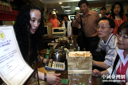為了迎接大陸游客潮,羅兄很早就開始做準(zhǔn)備,放棄不二價的原則,照顧大陸游客習(xí)慣,給予適當(dāng)優(yōu)惠。大陸游客王先生表示:看到茶行里的質(zhì)量品質(zhì)鑒定書,心里非常放心。老板娘是這里的原住民,為人樸實服務(wù)周到,茶葉質(zhì)量有保障。而幾千臺幣的價格他們也認為可以接受。