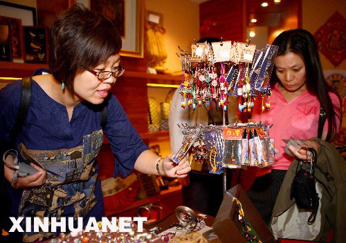 7月7日,兩位來自北京的游客在阿里山森林生態(tài)公園一商店內(nèi)選購紀(jì)念品。 大陸居民赴臺旅游首發(fā)團(tuán)抵達(dá)臺灣后,開始奔赴臺灣一些著名景點(diǎn),在領(lǐng)略臺灣自然景色的同時(shí),開始抓緊時(shí)間為親朋好友選購一些獨(dú)具臺灣特色的旅游紀(jì)念品。 新華社記者 陳建力攝