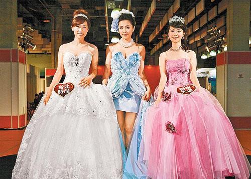 李婉鈺(中)穿上爆乳婚紗搶鏡。 來源:臺灣《蘋果日報》