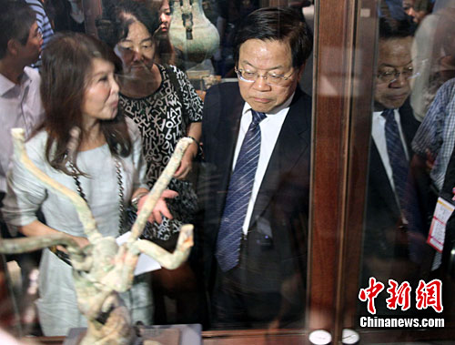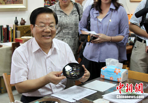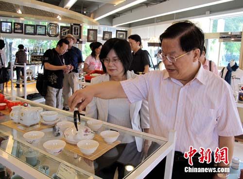 正在臺(tái)灣參訪(fǎng)的中華文化聯(lián)誼會(huì)名譽(yù)會(huì)長(zhǎng)蔡武9月4日來(lái)到位于南投縣的臺(tái)灣工藝研究發(fā)展中心參觀,他對(duì)臺(tái)灣的手工藝品很感興趣。中新社記者 路梅 攝