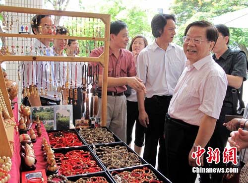 正在臺(tái)灣參訪(fǎng)的中華文化聯(lián)誼會(huì)名譽(yù)會(huì)長(zhǎng)蔡武9月4日來(lái)到位于南投縣的臺(tái)灣工藝研究發(fā)展中心參觀,他對(duì)臺(tái)灣的手工藝品很感興趣。他表示,保護(hù)和傳承民族的、民俗的、民間的各種工藝、非物質(zhì)文化遺產(chǎn)是非常有意思、非常好的一件事情,兩岸都在做這樣的努力,應(yīng)多做這方面交流。