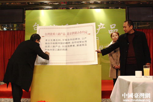 本次供銷合作會上,共吸引了北京的多個高端銷售渠道,如華聯、賽特、燕莎友誼、百盛、太平洋等高端超市,與臺灣供應商簽署供銷合作約定書。
