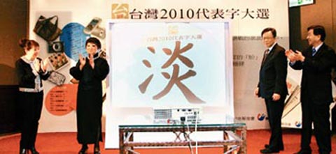 中新網(wǎng)12月16日電 據(jù)臺灣《聯(lián)合報》報道,臺灣2010代表字票選15日揭曉,“淡”字以近萬票拔得頭籌,成為最能代表今年臺灣社會風景與民眾心景的漢字。