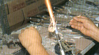 由于新竹盛產(chǎn)矽砂,又蘊(yùn)藏豐富的天然氣,掌握了原料與燃料的優(yōu)勢(shì),因此迅速發(fā)展成玻璃業(yè)的龍頭,至今全臺(tái)仍有90%的玻璃工廠集中在新竹。  隨著玻璃應(yīng)用的日益廣泛,新竹玻璃的產(chǎn)品也日趨多元,琳瑯滿目。另一方面,隨著創(chuàng)作者的不斷投入,玻璃工藝也逐漸走向精致化,發(fā)展出強(qiáng)調(diào)個(gè)人風(fēng)格的藝術(shù)品。經(jīng)過多年的經(jīng)營(yíng)及努力,新竹的玻璃工藝已逐漸打響名號(hào),如同陶瓷之于鶯歌、石頭之于花蓮,玻璃也成為新竹引以自豪的文化資產(chǎn)。以玻璃為材質(zhì)的公共造景,也在新竹街頭出現(xiàn),例如市立文化中心前的“生生不息”、東門城廣場(chǎng)的玻璃地坪等。 “吹”出來的藝術(shù)  玻璃的主要原料為矽砂、石灰,但因添加物的成份與比例不同,可變化出豐富的種類與應(yīng)用功能,其中水晶玻璃由于透光性佳、質(zhì)地堅(jiān)硬,特別晶瑩剔透,最常被應(yīng)用在藝術(shù)表現(xiàn)上。制作玻璃時(shí),首先要將矽砂送入攝氏1100-1400度的高溫熔爐中,熔成膏液狀,再經(jīng)由多次吹制、再加熱,才能冷卻定型。  新竹玻璃工藝品的種類相當(dāng)多元,包括典雅秀麗的花瓶、五彩飾燈、文鎮(zhèn)等實(shí)用小品,以及動(dòng)物、人物造型的玲瓏擺飾;而近年來自由創(chuàng)作風(fēng)氣興起,強(qiáng)調(diào)創(chuàng)意造型、細(xì)致手工、限量制作的藝術(shù)品,更受到收藏家的喜愛。一般而言,玻璃藝品在造型上講究線條融暢、接合細(xì)膩,質(zhì)感則力求完美無瑕、用色均勻,但也有部分創(chuàng)作者,刻意以雜色、氣泡等“瑕疵”,營(yíng)造特殊效果。 折射未來的光彩 “聯(lián)恒玻璃”便一直是生產(chǎn)工藝玻璃的主要大廠。在此可目睹火紅的玻璃膏在師傅的巧手下,吹制、壓模,脫胎成一件件光彩耀眼的藝品。此外,聯(lián)恒還規(guī)劃了一間“砂靈水晶藝術(shù)玻璃工坊”,展售近5000件該廠歷年來的作品,其中又以做工復(fù)雜的套色噴砂雕刻花瓶最特別。 “琦諾水晶玻璃藝術(shù)中心”則是一處博覽世界各地玻璃藝品的好地方,這里除經(jīng)銷本地玻璃藝品外,也進(jìn)口來自意大利、瑞典、捷克、德國(guó)、法國(guó)、日本各國(guó)玻璃藝術(shù)家的作品。琦諾的主人黃正郎夫婦,本身即對(duì)玻璃藝品十分著迷,其所收藏的水晶古董,例如色澤濃如唐三彩的玻璃馬、花紋細(xì)致的玻璃盒、古董水晶杯,件件令人大開眼界。