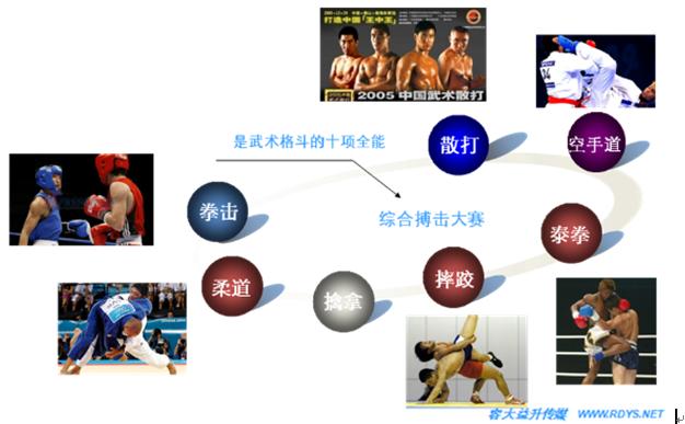 綜合搏擊開放的賽事規(guī)則,完美的將空手道、散打、古典跤、自由跤、拳擊、泰拳、跆拳道、柔道、俄羅斯桑勃式摔跤等搏擊運(yùn)動融于一體,讓所有搏擊賽事同臺競技,綜合搏擊是武術(shù)格斗賽事的十項(xiàng)全能。