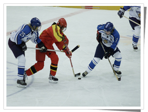 冰球場長61米,寬30米,四周有高1.15 ~1.22米的界墻。球門高1.22米,寬1.83米。分兩隊(duì)比賽,比賽分三局進(jìn)行,每局20分鐘,中間休息15分鐘,進(jìn)一球得1分,得分多者為勝。最好的冰球選手的滑行速度可以達(dá)到50公里/小時(shí)。同足球不同,冰球可以隨意換人,沒有名額限制。