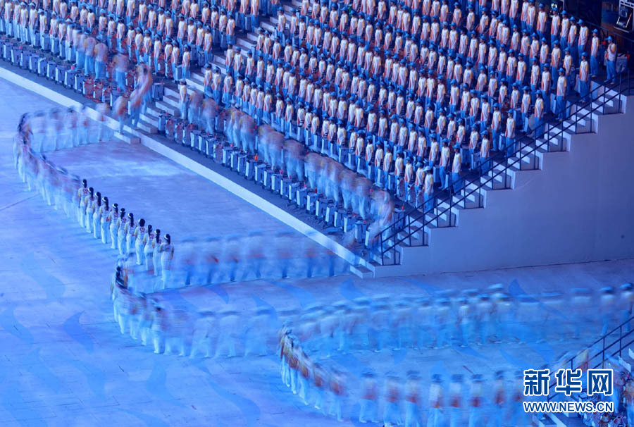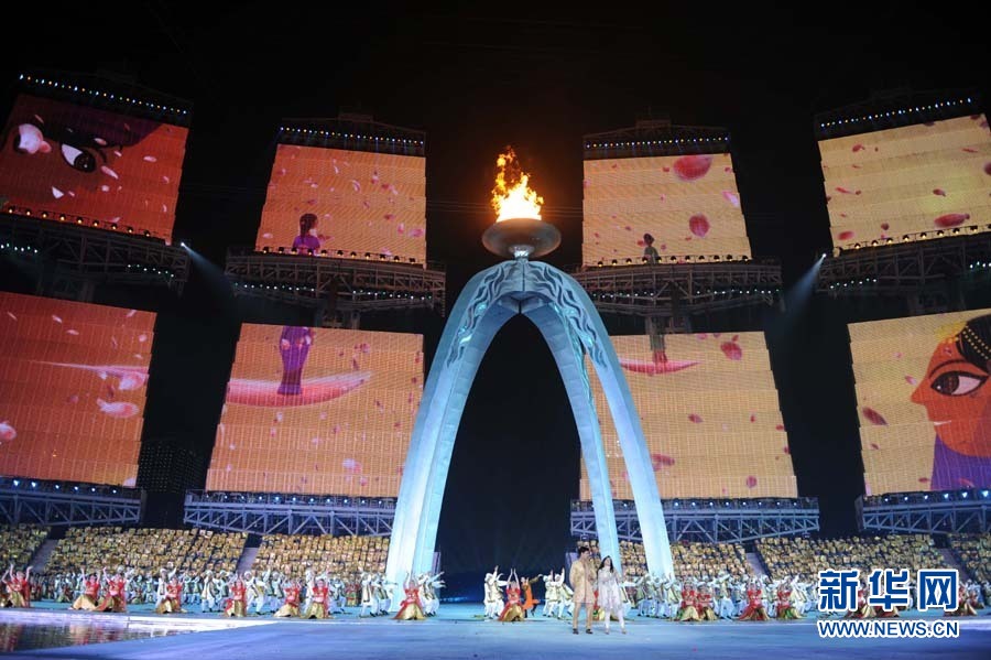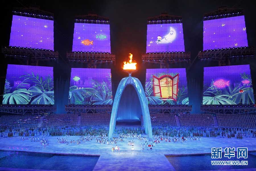 11月27日,第16屆亞運(yùn)會(huì)在廣州市海心沙島舉行閉幕式。這是文藝表演《請(qǐng)把你的歌留下》。 新華社記者公磊攝