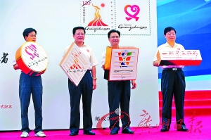 市領(lǐng)導(dǎo)為亞運(yùn)首日封蓋郵戳。