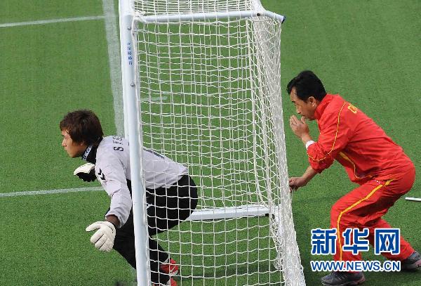 足球:“躲”在球門后的教練[組圖]