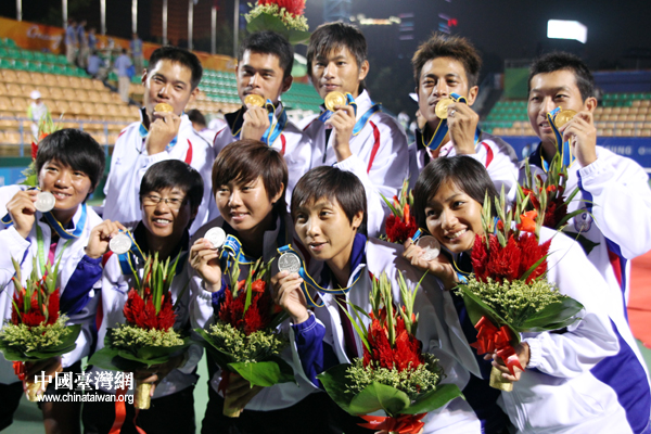 中國(guó)臺(tái)灣網(wǎng)11月15日廣州消息 第十六屆廣州亞運(yùn)的第二個(gè)比賽日,中華臺(tái)北隊(duì)共參加了17個(gè)項(xiàng)目的比賽,向其中10個(gè)項(xiàng)目的獎(jiǎng)牌發(fā)起沖擊。最終在奪金熱點(diǎn)軟式網(wǎng)球男女團(tuán)體決賽中不負(fù)眾望,為中華臺(tái)北隊(duì)贏得本屆亞運(yùn)會(huì)的首金和首銀。目前中華臺(tái)北以累計(jì)1金2銀6銅的成績(jī)躍居獎(jiǎng)牌榜第六位。