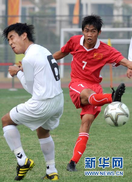 12月13日,中國(guó)隊(duì)球員林聰昌(右)在比賽中起腳射門。當(dāng)日,在廣州2010年亞殘運(yùn)會(huì)七人制足球首場(chǎng)比賽中,中國(guó)隊(duì)以4比2戰(zhàn)勝韓國(guó)隊(duì),首戰(zhàn)告勝。新華社記者韓傳號(hào)攝